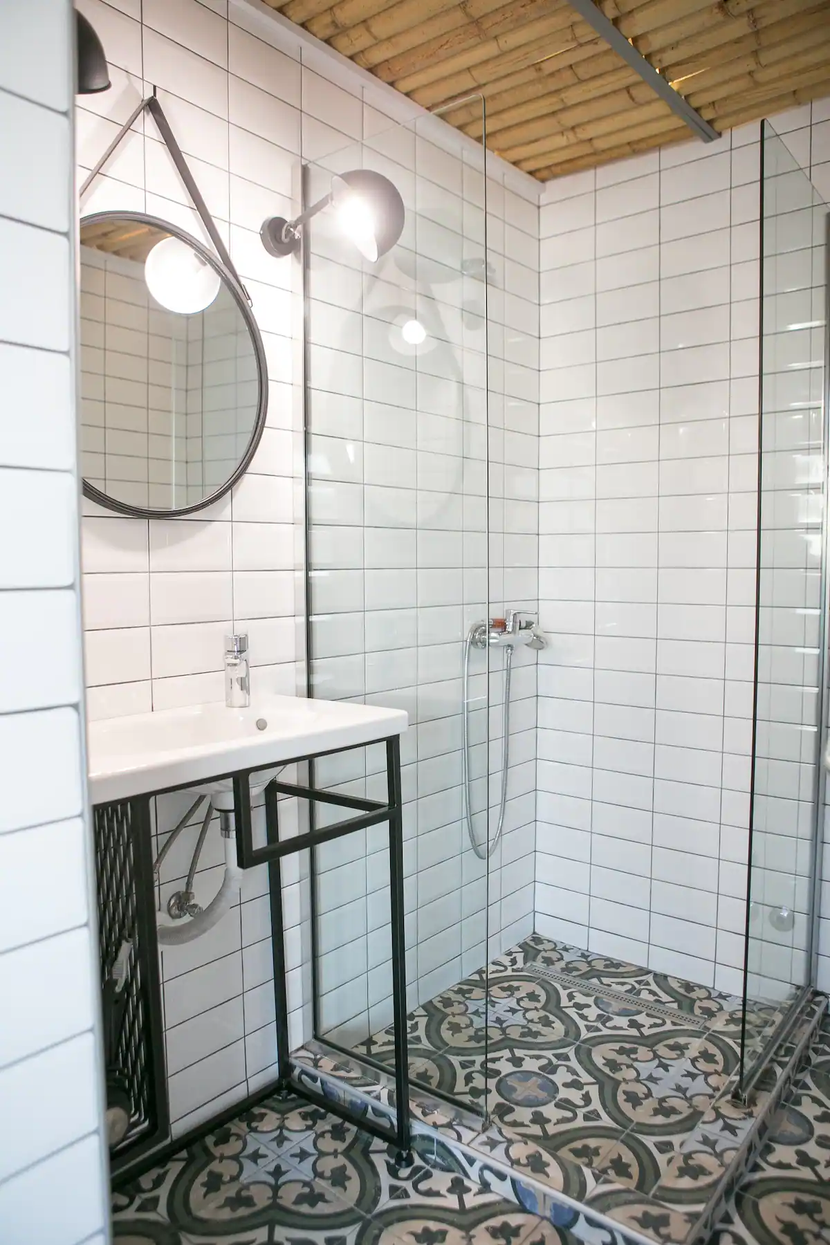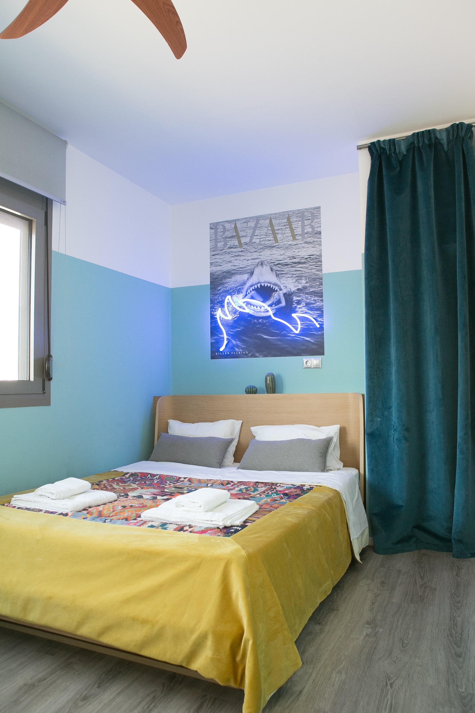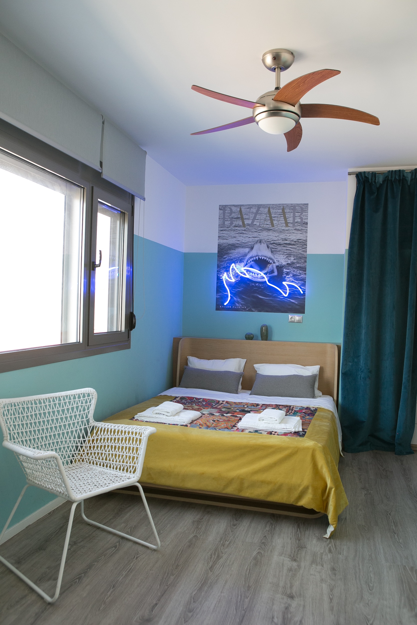 Mazi Rooms 7.1 apartment is recently renovated according to the standards of a modern, fully equipped, functional space which can accommodate two adults plus 1-2 children. The contemporary and open-concept room design is mostly white, but blocks of color and materials have been used to define various areas throughout the interior.